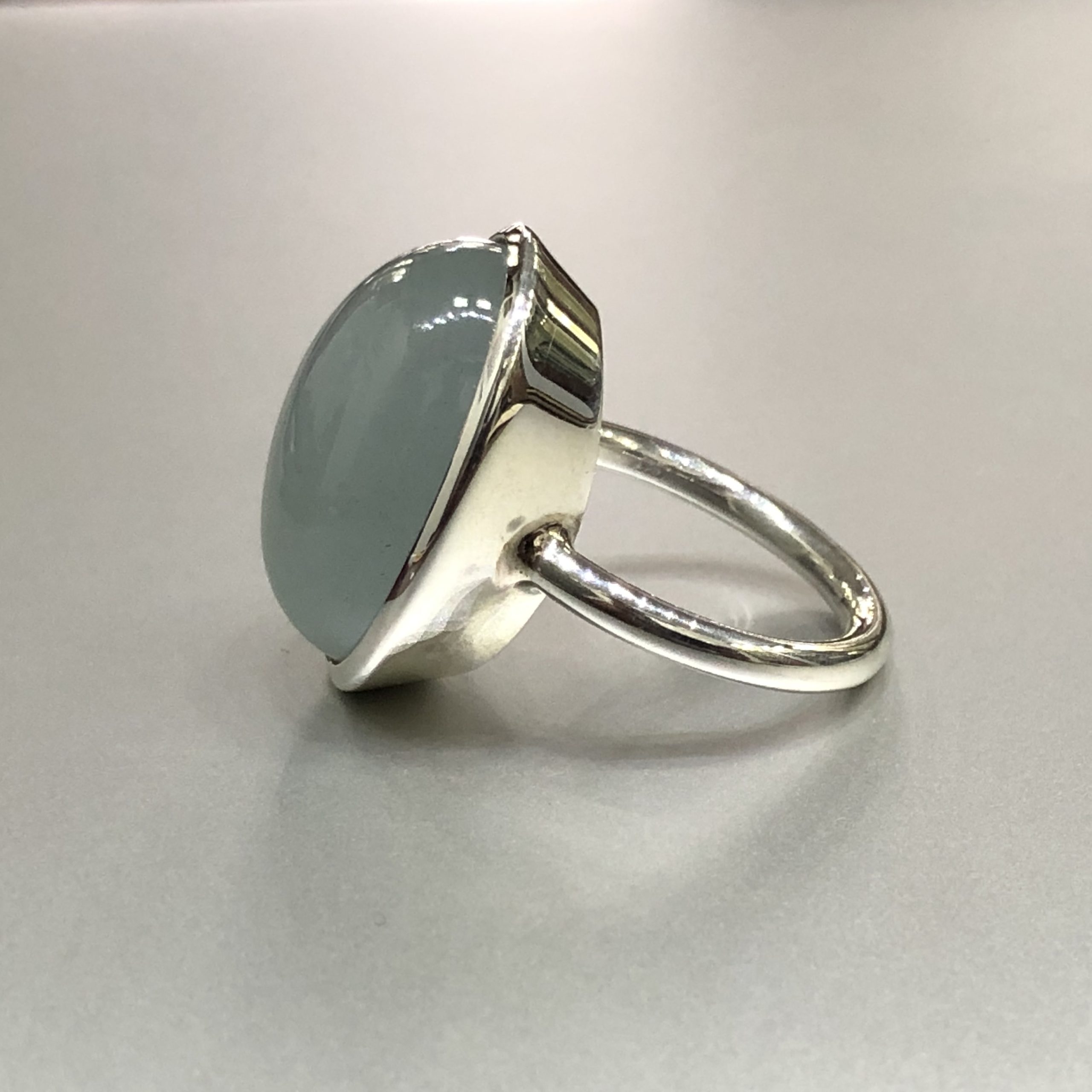 Beautiful Greenish Blue colour Natural aquamarine set Silver ring.