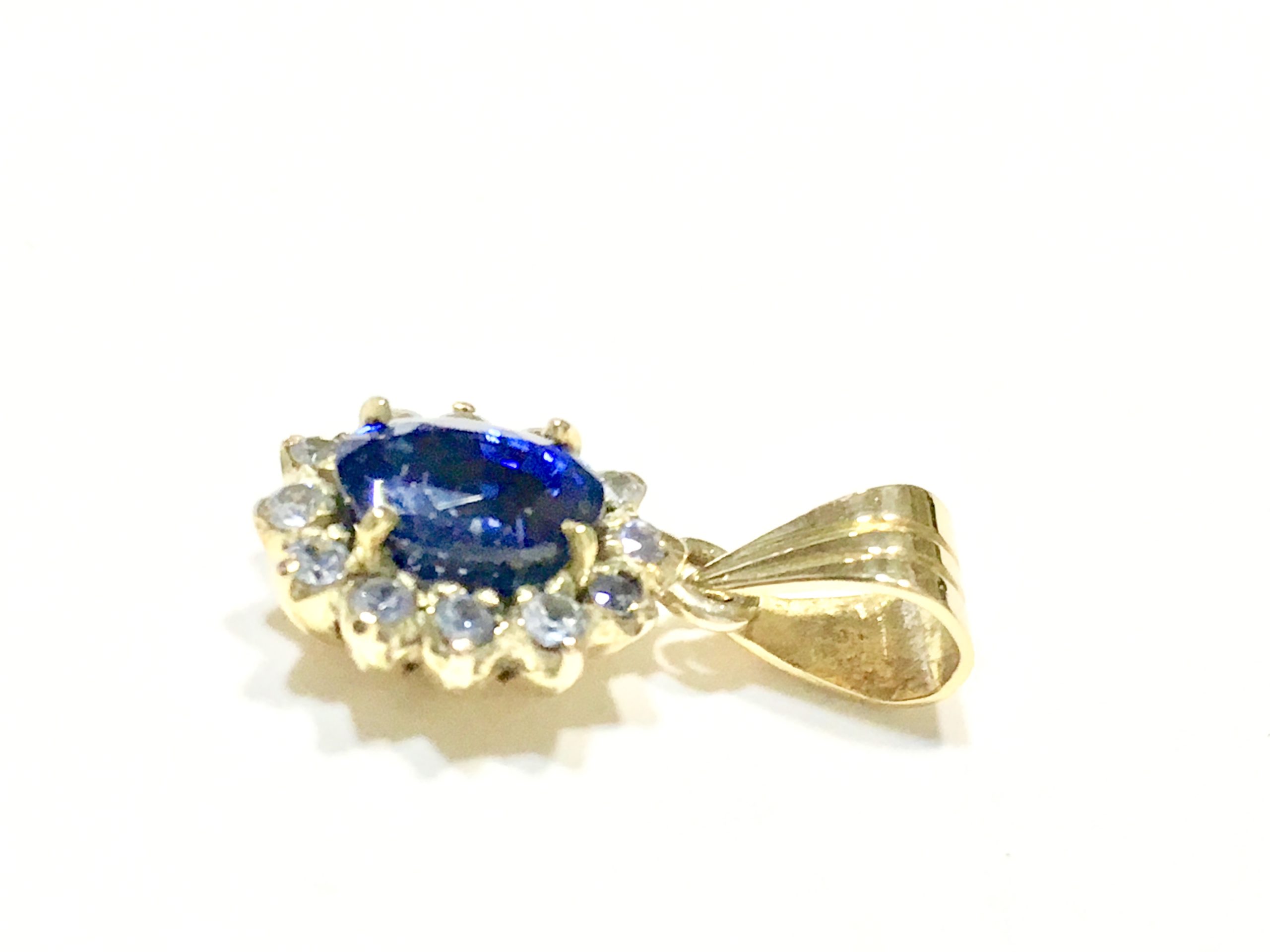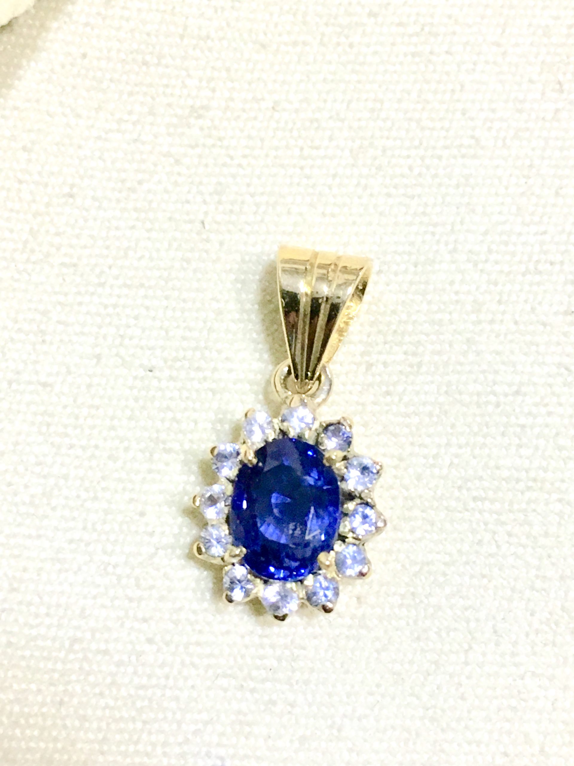 Beautiful Vivid Blue colour Ceylon Sapphire has been elegantly set with natural White Sapphires to create this gold pendant