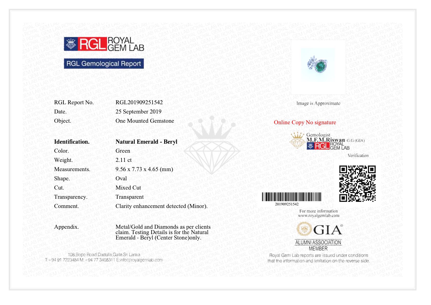 - Certification: GIA Qualified Gemmologist Report (See Pictures)
