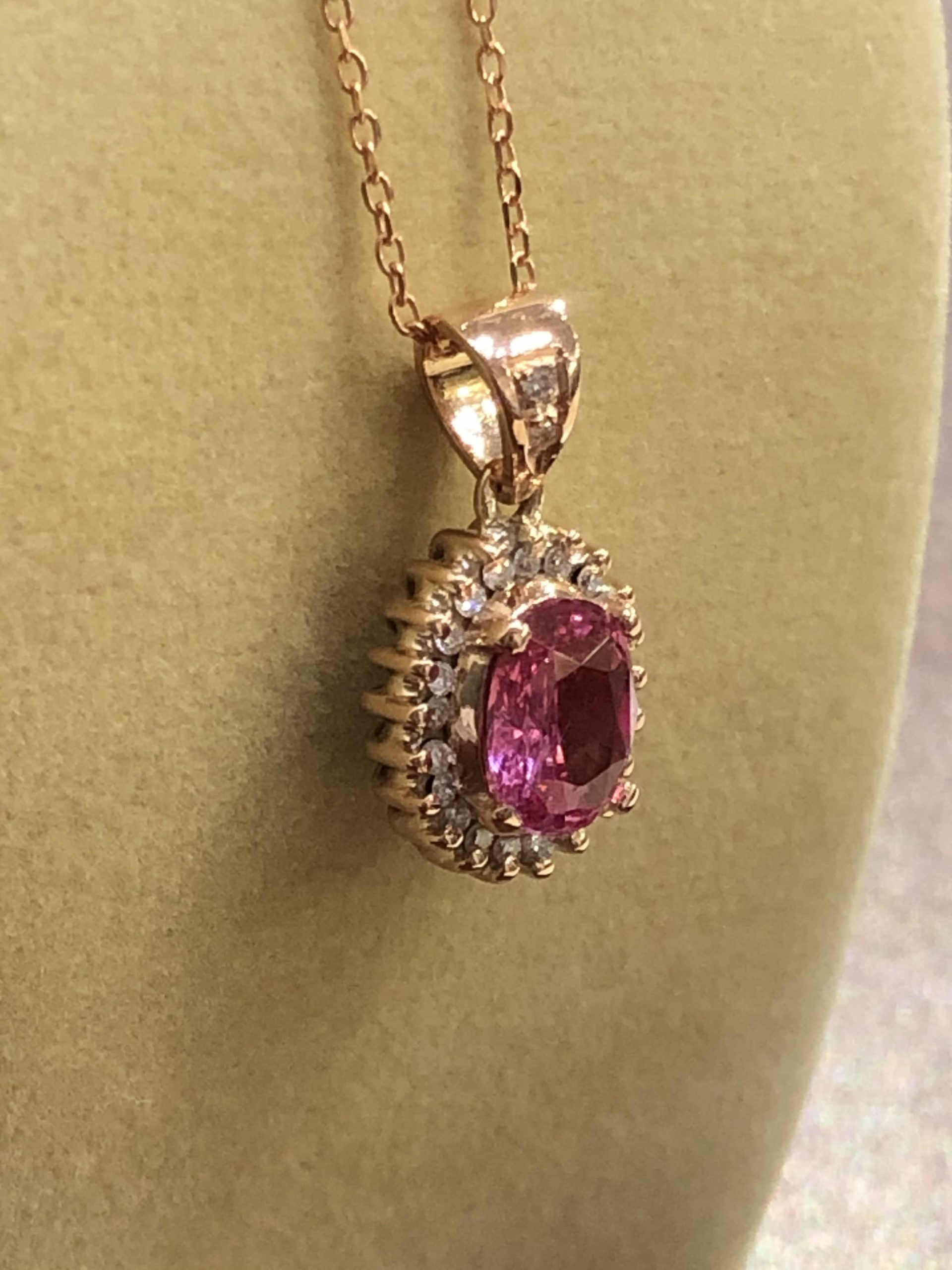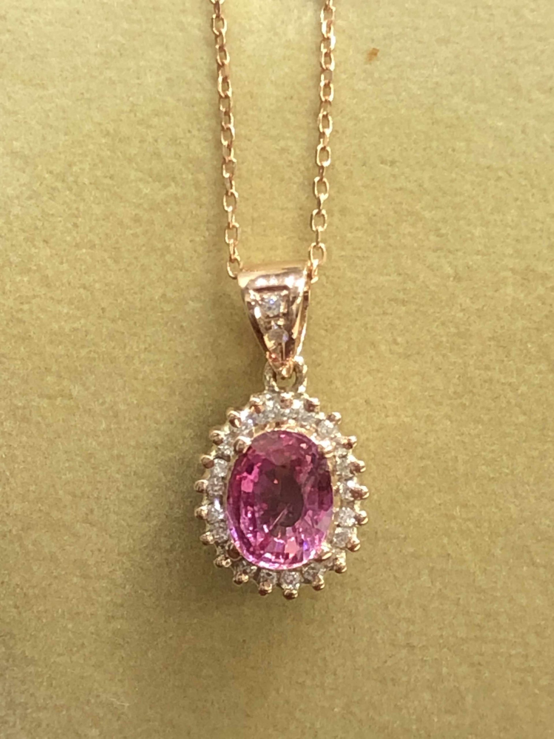 14kt Rose Gold & Diamonds Padparadscha Sapphire (Unheated) Pendant