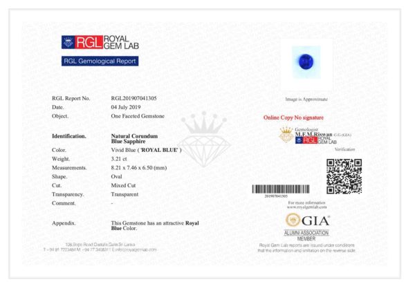 This Sapphire is described as “Vivid Royal Blue” for its amazing colour saturation.