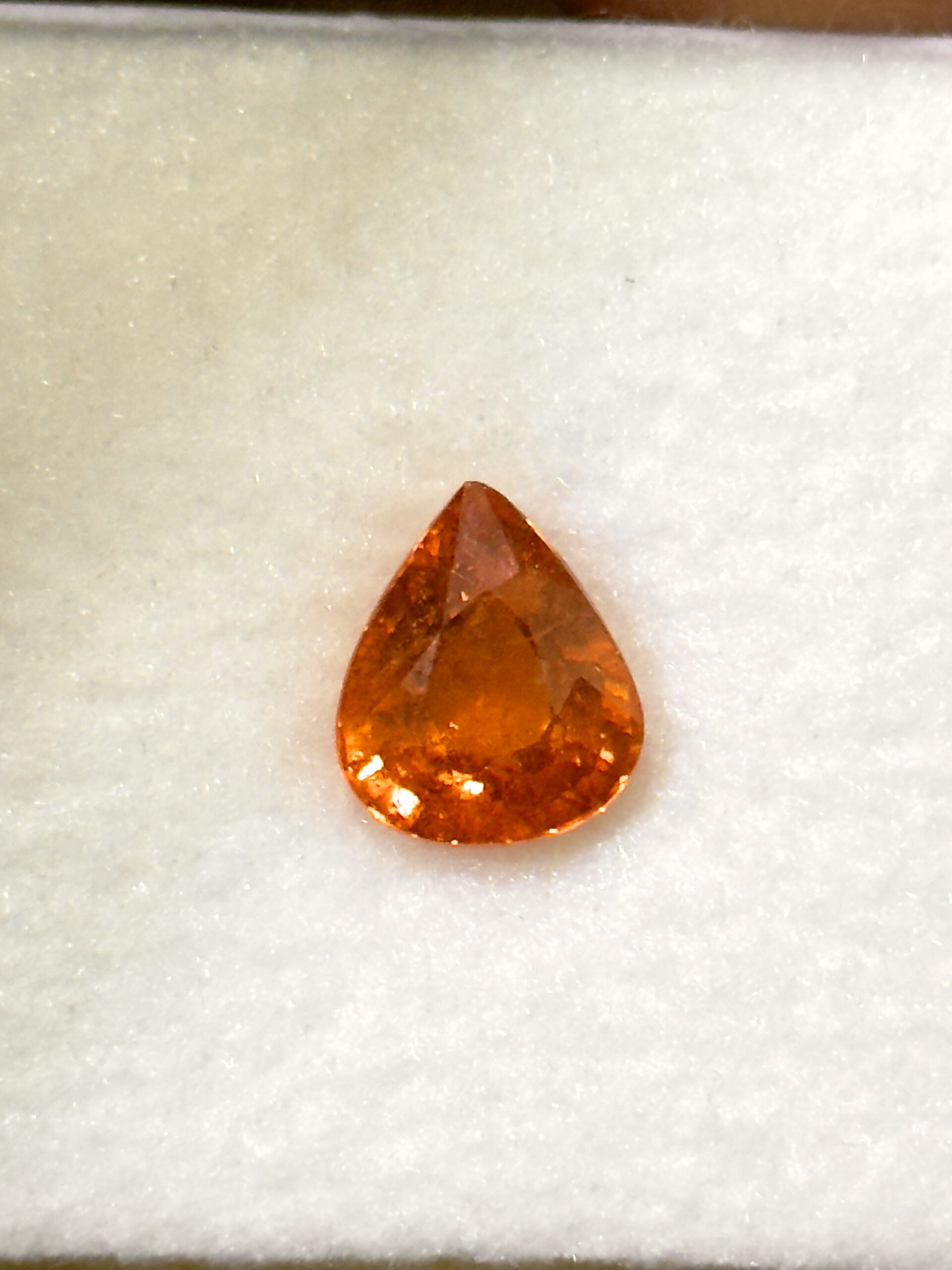 Behold the vibrant allure of this natural Spessartine Garnet, renowned for its coveted “Fanta Orange” colour. This pear-shaped gemstone boasts an exceptionally rich and saturated hue, radiating a fiery glow. Whilst it features slight natural inclusions, these are typical for this vibrant garnet variety and do not diminish its intense, captivating colour. Perfect for a statement ring or a unique pendant, this Spessartine Garnet offers a truly mesmerising splash of colour