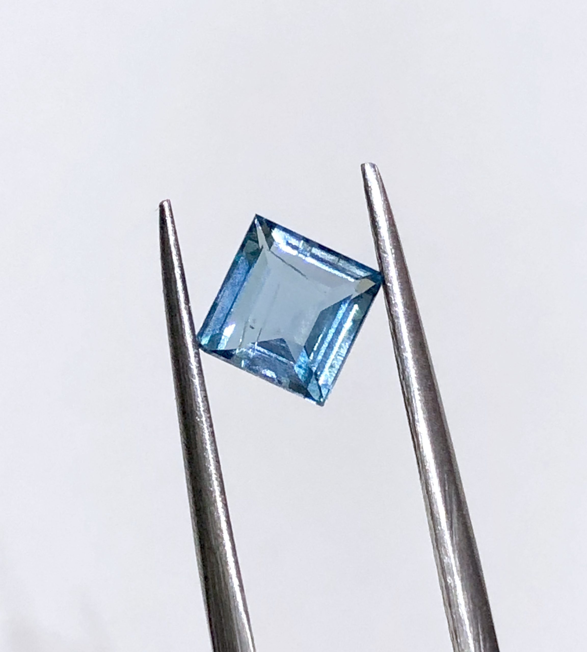 Beautiful sea blue colour Natural Aquamarine is cut to a much preferred square shape with clean lines.