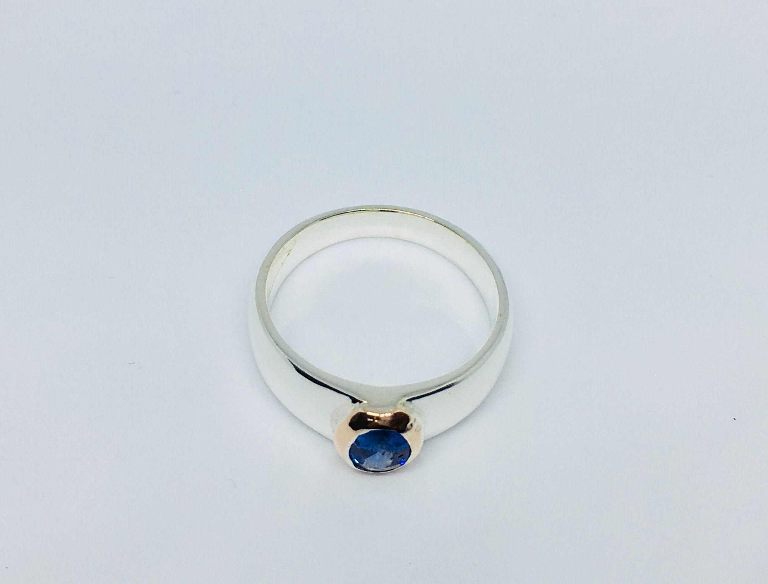 Natural Blue Sapphire Sterling Silver and Gold Ring