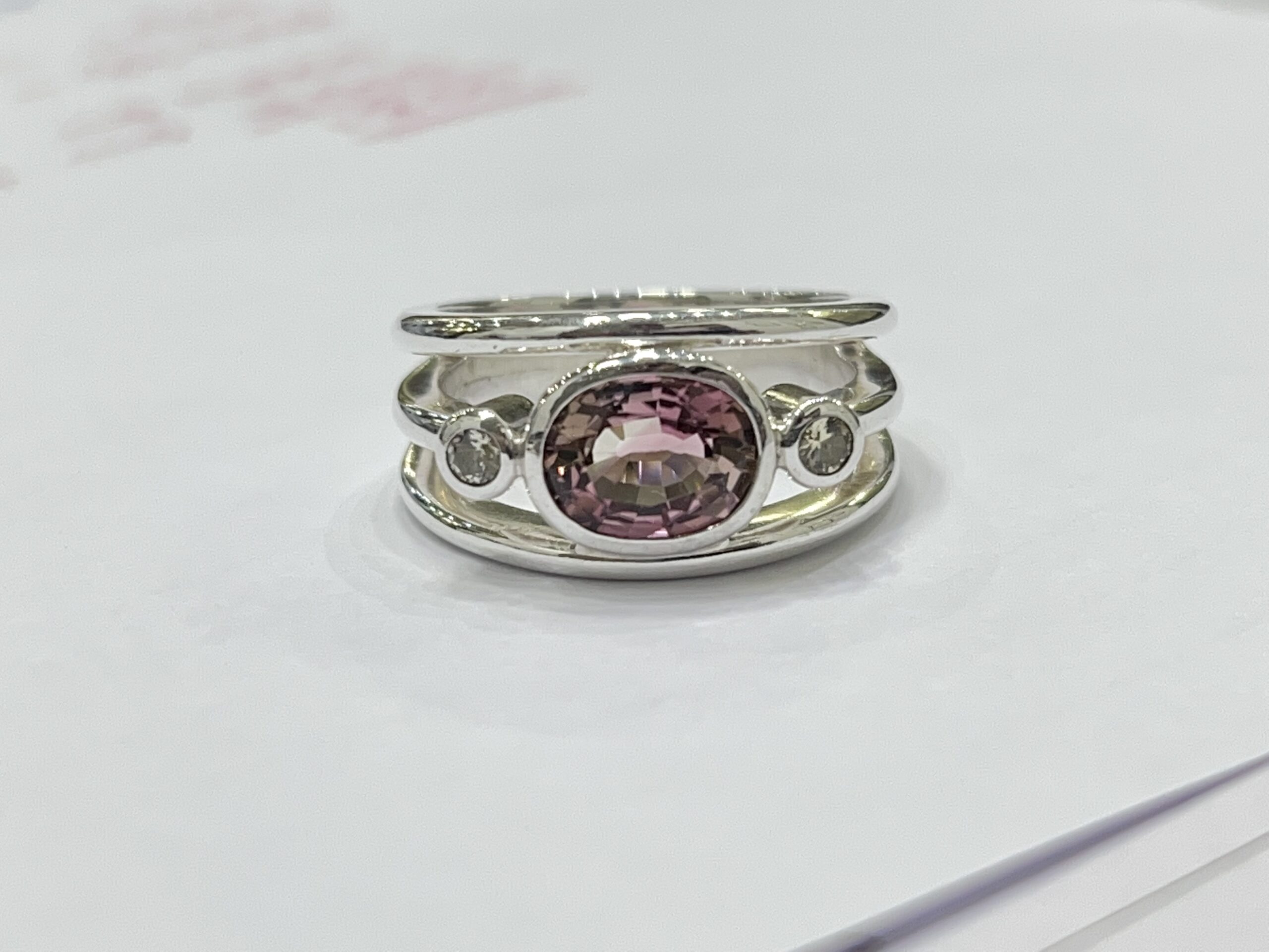 Pink Tourmaline & White Sapphire 3 stone ring