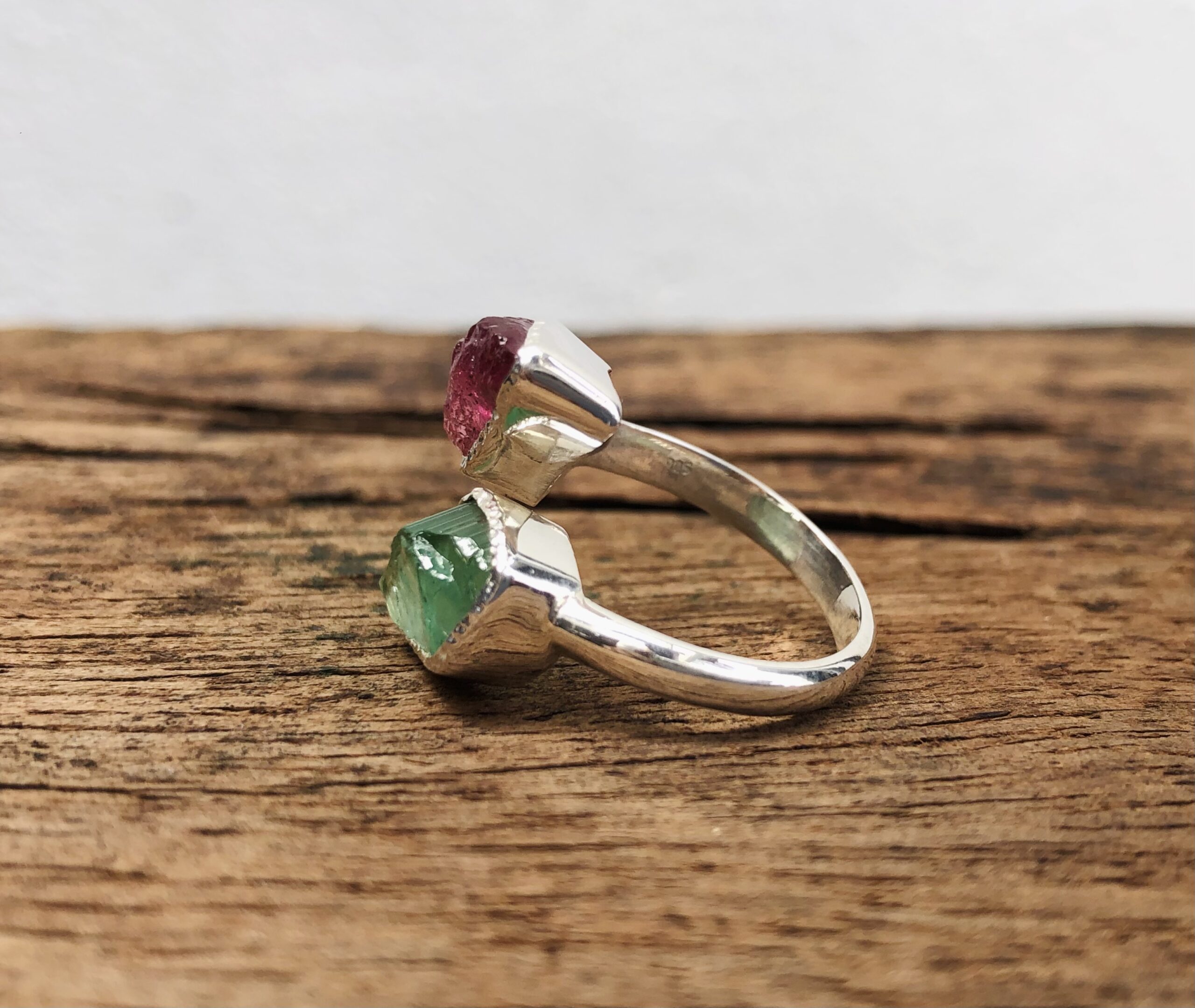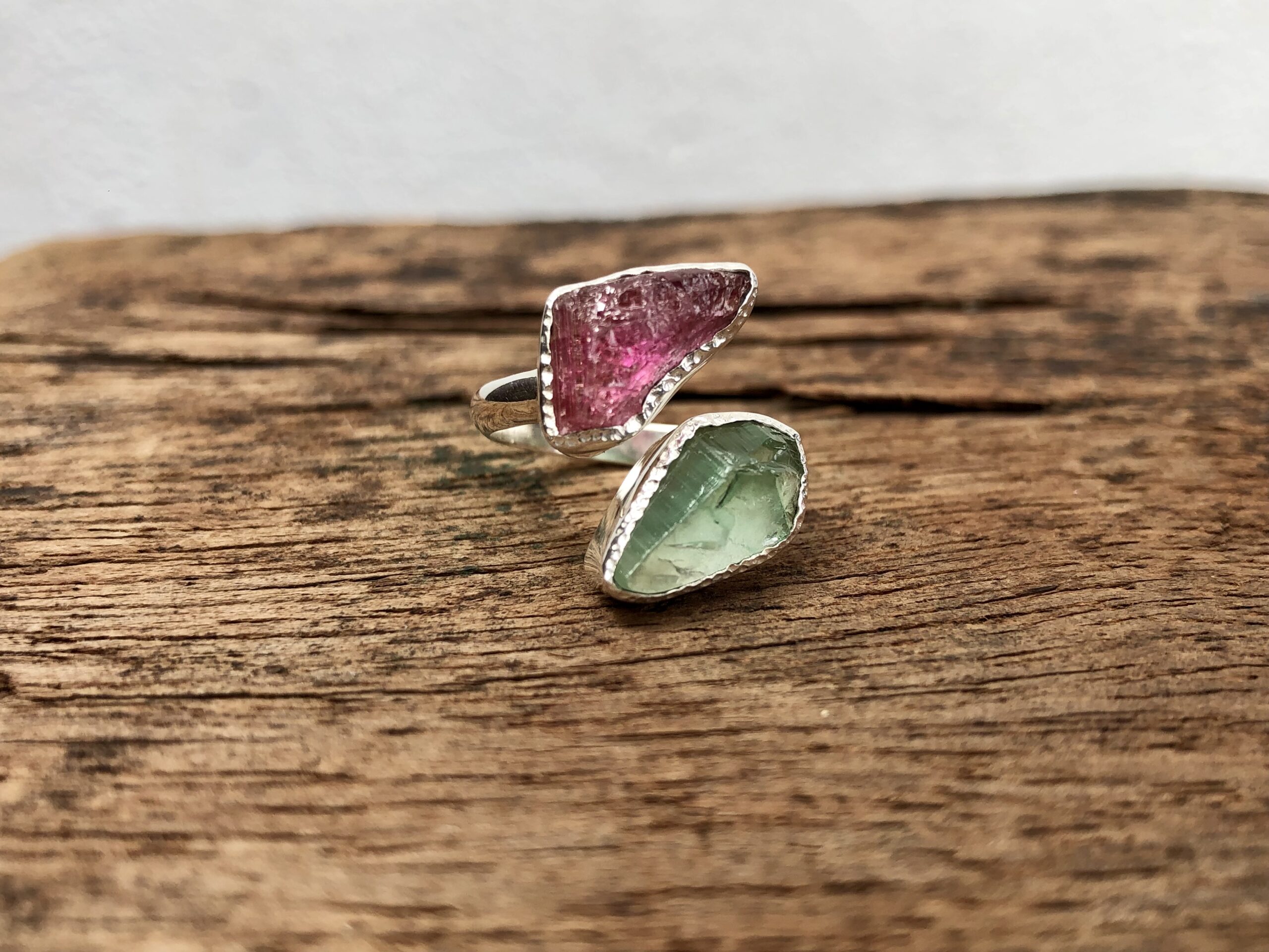 Selected beautiful rough uncut Tourmalines set in sterling silver. All handmade in Galle, Sri Lanka š±š°