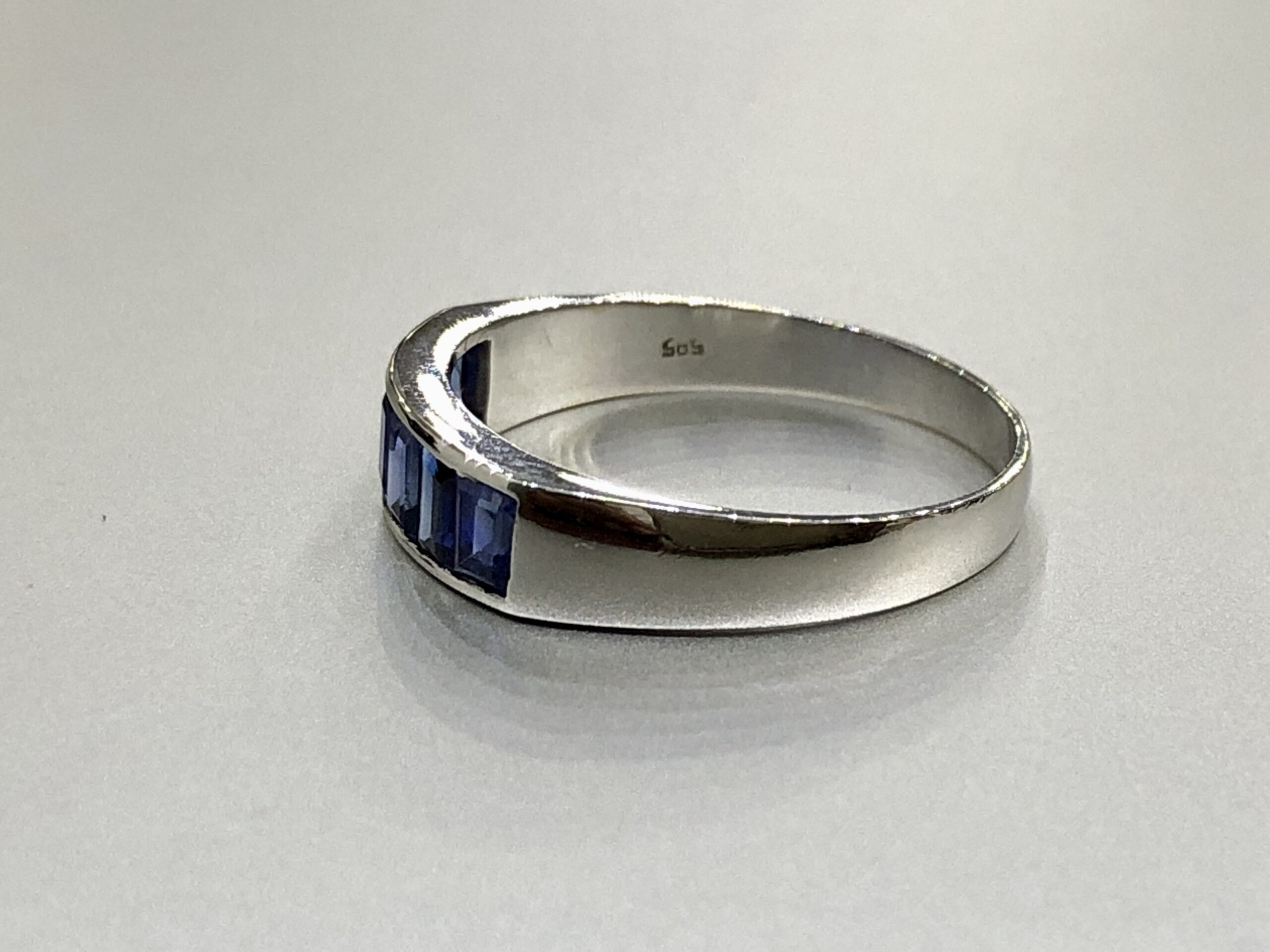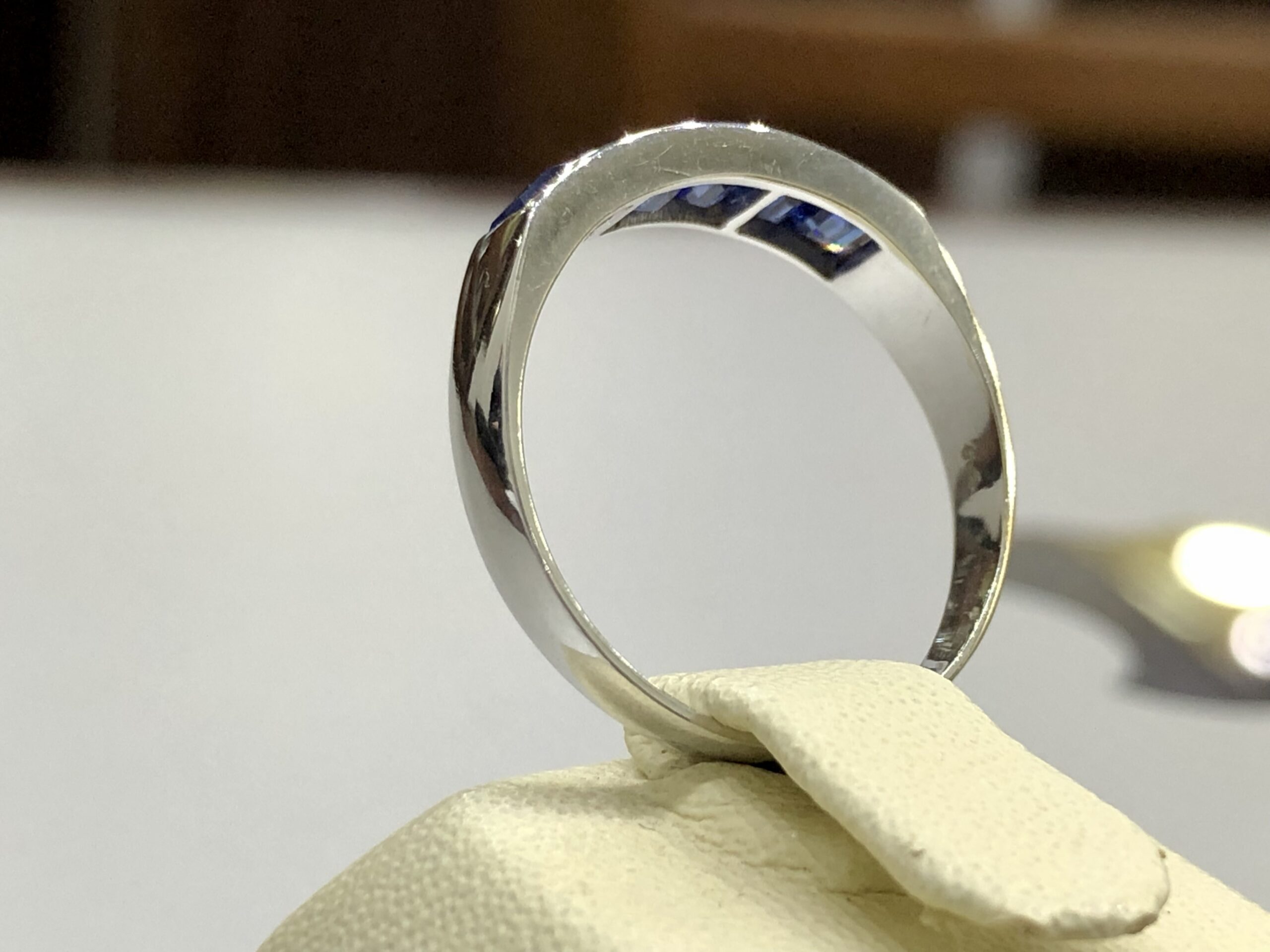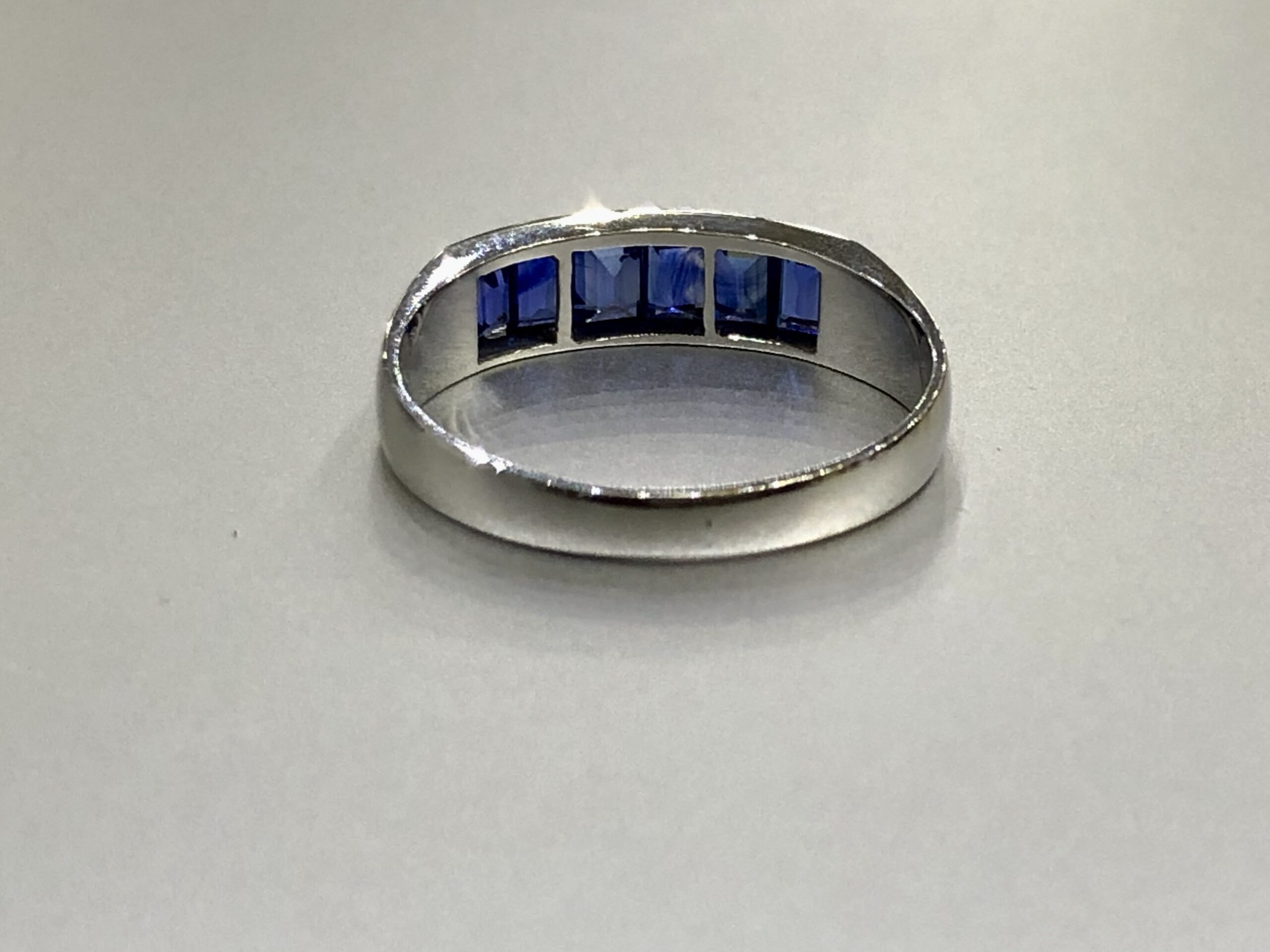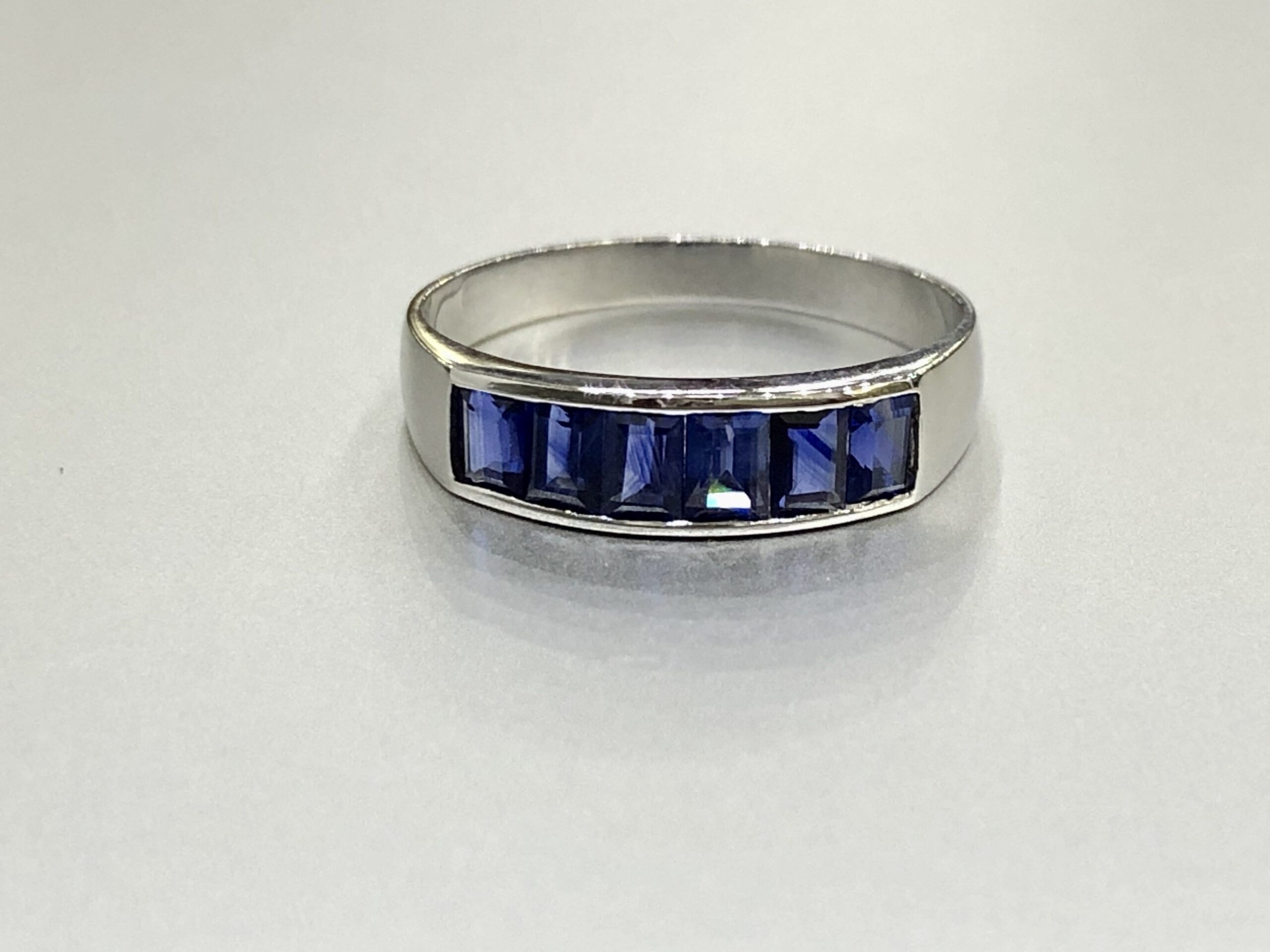 Modern and symmetrical, this ring is set with 6 beautiful and well saturated Royal Blue Sapphires. All handmade in Galle, Sri Lanka