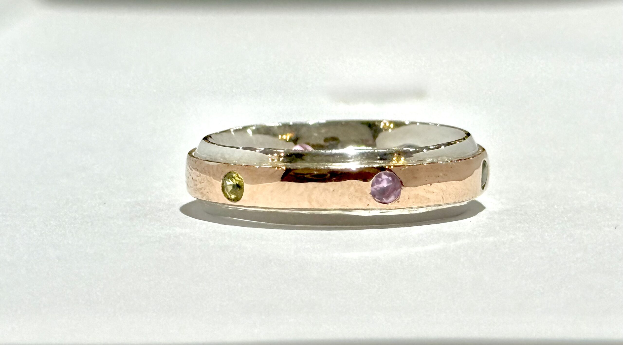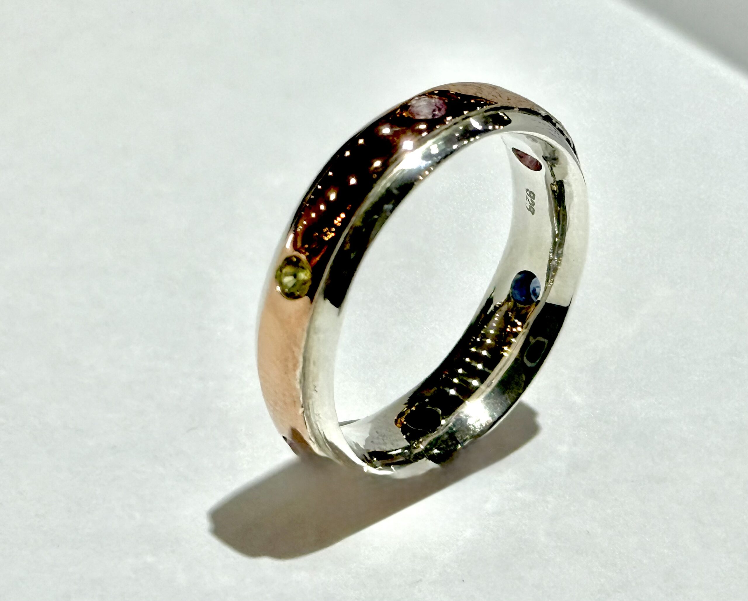 This timeless eternity ring symbolises enduring love or commitment and makes a perfect addition to any jewellery collection. The subtle combination of sterling silver and warm 9ct gold creates a sophisticated and versatile piece that can be worn every day or for special occasions. Each ring is lovingly handcrafted, ensuring a high-quality and unique piece of jewellery.
