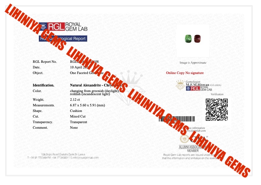 This stone’s generous 2.12ct weight and classic cushion mixed cut create an exquisite profile with a beautiful, transparent finish. Large Alexandrites with such a complete and vivid colour change are exceptionally hard to find, making this an invaluable centrepiece for a bespoke heirloom piece or a serious collector’s portfolio.