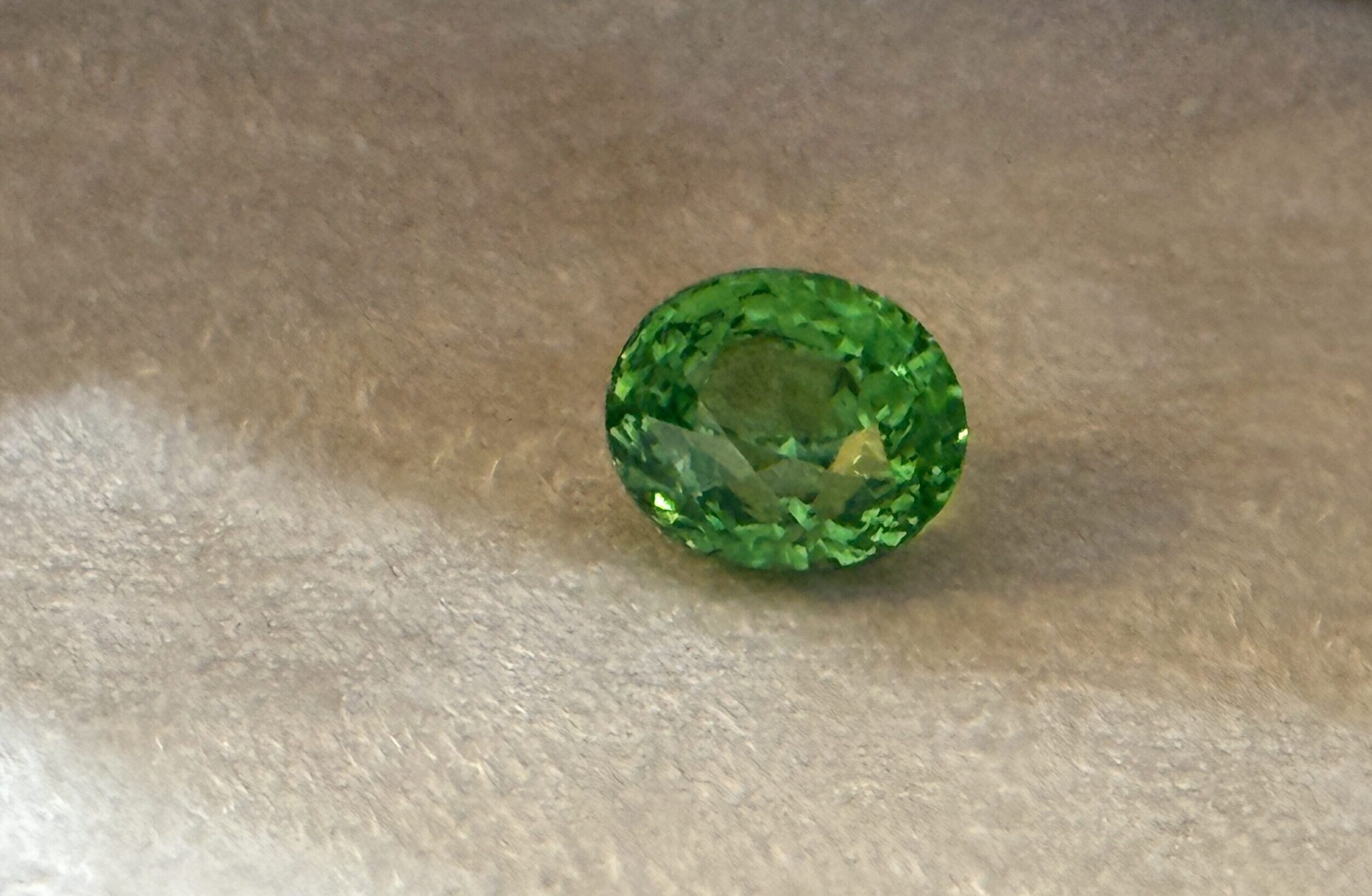 Precision-cut into a classic oval mixed cut, the stone’s dimensions of 9.29mm by 7.96mm ensure a commanding presence and maximum light return. Its transparent clarity allows for a dazzling display of internal fire, highlighting the natural, untreated beauty of the gem. This Tsavorite is an ideal centerpiece for a high-jewellery creation or a standout addition to an elite gemstone collection.